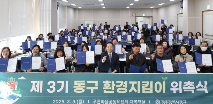 (포탈뉴스통신) 광주 동구는 지난 9일 푸른마을공동체센터에서 쾌적하고 건강한 지역 환경 조성을 위해 ‘제3기 동구 환경지킴이’ 위촉식을 개최하고 본격적인 활동에 나선다고 밝혔다.
