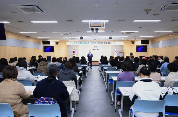 (포탈뉴스통신) 대구 수성구는 지난 9일 마을돌봄시설(지역아동센터, 다함께돌봄센터) 종사자를 대상으로 ‘마을돌봄시설 종사자 아동학대 예방 특별교육’을 실시했다고 밝혔다.