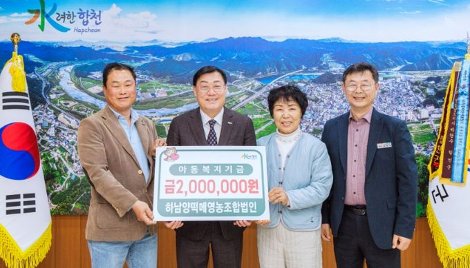 김윤철 합천군수는 “매년 잊지않고 아이들을 위해 따뜻한 나눔을 실천해 주시는 하남양떡메영농조합법인에 깊이 감사드린다”며 “전달해 주신 기금은 아이들의 문화체험 기회 확대 등에 소중히 사용하겠다”고 말했다.