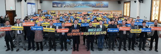 나주시는 10일 오후 시청 대회의실에서 유관기관과 사회단체, 직능단체 관계자 등 200여 명이 참석한 가운데 ‘2026 나주방문의 해 범시민 서포터즈 발대식’을 개최했다고 밝혔다.