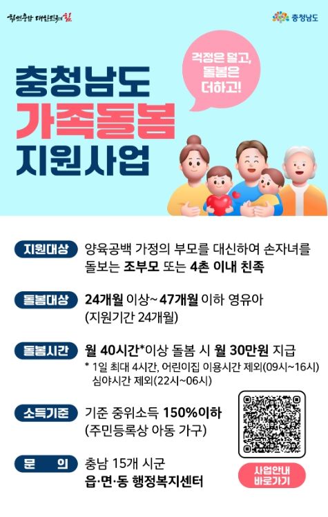 이번 사업은 부모를 대신해 손자녀를 돌보는 조부모나 4촌 이내 친족의 헌신적인 돌봄 가치를 인정하고, 가정 내 양육 부담을 실질적으로 완화하기 위해 추진된다.