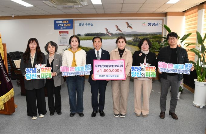 (포탈뉴스통신) 창녕군은 10일 창녕군벤처농업인협의회(회장 오명주)가 지역 인재 육성을 위해 (재)창녕군인재육성장학재단(이사장 성낙인 창녕군수)에 장학금 100만 원을 기탁했다고 밝혔다.