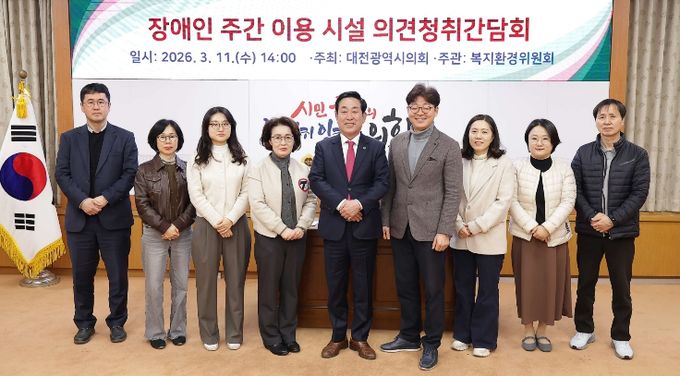 (포탈뉴스통신) 대전광역시의회 복지환경위원회는 11일 시의회 3층 소통실에서 이효성 의원(국민의힘, 대덕구1) 주재로 '장애인 주간 이용시설 의견청취 간담회'를 개최했다.