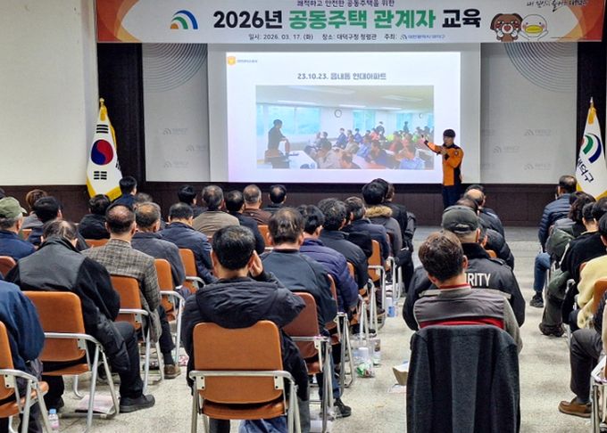 (포탈뉴스통신) 대전 대덕구는 17일 구청 청렴관에서 공동주택 경비책임자와 시설물 안전관리자 등 100여 명을 대상으로 ‘2026년 공동주택 관계자 교육’을 진행했다.
