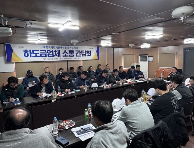 (포탈뉴스통신) 포항시는 17일 포항 국제전시컨벤션센터(POEX) 건립 현장사무실에서 시공사 및 하도급업체 관계자들과 함께 '건립공사 소통 간담회'를 개최했다.
