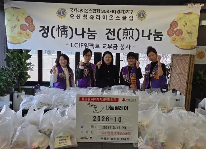 이날 청죽라이온스클럽 회원들은 정성껏 준비한 전을 중앙동 행정복지센터에 전달하며, 지역 내 어려운 이웃들이 따뜻한 식사를 통해 위로와 힘을 얻기를 바라는 마음을 전했다.