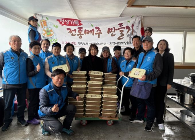 이번 활동은 광명6동의 지역 특화 사업으로, 위원들이 지난해 11월부터 정성껏 준비한 메주를 활용해 진행했다. 협의체는 어려운 이웃의 건강한 식생활을 돕기 위해 수개월간의 정성을 담아 이번 나눔을 준비했다.