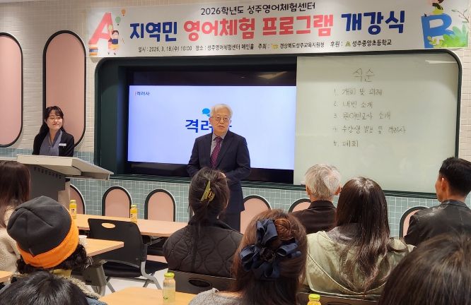 (포탈뉴스통신) 경상북도 성주교육지원청 산하 성주영어체험센터는 지역민의 영어 의사소통 능력 향상과 평생학습 문화 확산을 위해 '2026학년도 지역민 영어 회화 프로그램' 개강식을 성주영어체험센터 메인홀에서 개최했다.