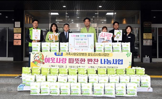 (포탈뉴스통신) 김제시는 가족사랑요양병원(이사장 박진만)이 지난 18일 관내 저소득계층을 위해 정성껏 준비한 반찬 60세트를 가족사랑요양병원 효도리사회사업단(단장 한진국)을 통해 기탁했다고 밝혔다.