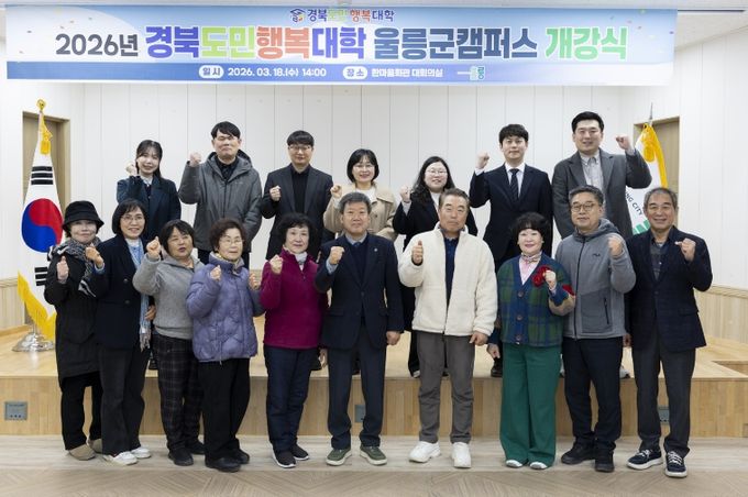 (포탈뉴스통신) 울릉군은 18일 오후 2시 울릉군청 4층 회의실에서 남한권 울릉군수(학장)를 비롯해 수강생과 관계자 등 20여 명이 참석한 가운데 ‘2026년 경북도민행복대학 울릉군캠퍼스 개강식’을 개최했다.