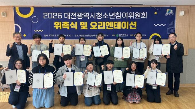 (포탈뉴스통신) 대전시는 21일 오전 10시 대전청소년위캔센터에서 ‘대전광역시 청소년참여위원회’ 위촉식을 개최하고, 공개모집 및 심사를 통해 선발된 청소년 14명에게 위촉장을 수여했다.