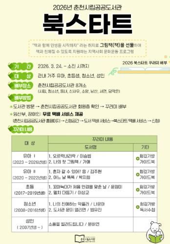 (포탈뉴스통신) 춘천시립도서관이 오는 24일부터 연령별 북스타트 꾸러미를 배부한다.