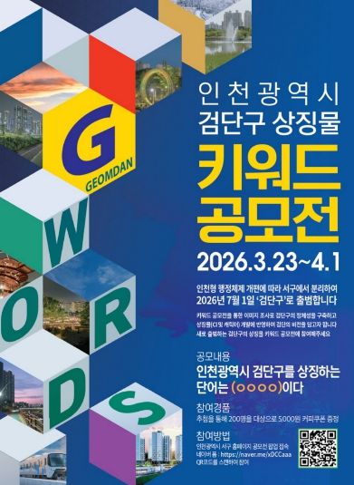 검단구 출범준비단 부서 관계자는 “이번 키워드 공모전은 주민이 생각하는 검단구의 이미지와 가치를 직접 담아내는 참여의 출발점”이라며, “검단구의 비전과 상징성을 효과적으로 표현할 수 있는 상징물을 만들기 위해 최선을 다하겠다”라고 말했다.