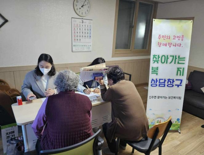 송경숙 인주면장은 "주민들이 보다 쉽게 보건·복지 서비스를 접할 수 있도록 찾아가는 상담을 지속적으로 운영하겠다"며 "현장 중심의 맞춤형 복지 서비스 제공에 힘쓰겠다"고 밝혔다.