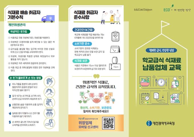 (포탈뉴스통신) 대전시교육청은 안전하고 건강한 학교급식을 위해 학교급식 식재료 공급업체를 대상으로 교육 리플릿을 제작·배부했다고 밝혔다.