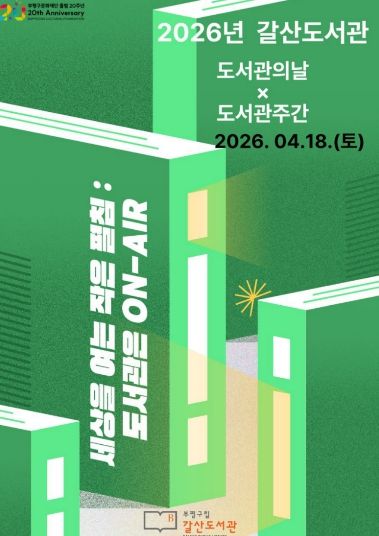 (포탈뉴스통신) 부평구립 갈산도서관은 2026년 도서관의 날·도서관 주간을 맞아 4월 한 달간 ‘세상을 여는 작은 펼침: 도서관은 ON-AIR’를 운영한다고 밝혔다.