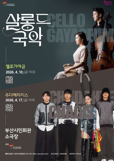 (포탈뉴스통신) (재)부산문화회관(대표이사 차재근)은 오는 4월 10일, 4월 17일 오후 7시 30분, 부산시민회관 소극장에서 '살롱 드 국악 – 첼로가야금, 추다혜차지스'를 선보인다.