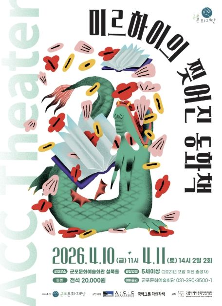 (포탈뉴스통신) 군포문화재단은 어린이와 가족이 함께 관람할 수 있는 공연 '미르하이의 찢어진 동화책'을 4월 10일~11일 군포문화예술회관 철쭉홀에서 개최한다고 밝혔다. 이번 공연은 2026 국립아시아문화전당재단 어린이 공연 유통 공모사업의 일환으로, 국립아시아문화전당(ACC) 창·제작 어린이 공연을 지역에 소개하기 위해 마련됐다.