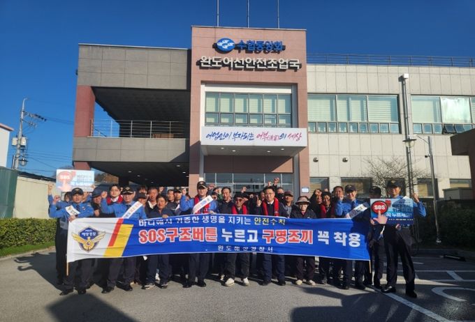 (포탈뉴스통신) 완도해양경찰서(서장 김태환)는 지난 19일 완도군 원동항에서 완도 어선안전조업국과 합동으로 어민들과 함께하는 ‘구명조끼 착용 캠페인’을 실시했다.