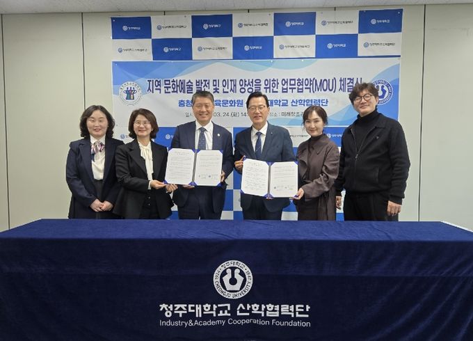 (포탈뉴스통신) 충청북도교육청 직속기관 교육문화원(원장 서종덕)은 청주대학교 산학협력단(단장 홍양희)과 24일, '나도 예술가' 정책 추진과 협력적 예술교육 생태계 조성을 위해 업무협약(MOU)을 체결했다.