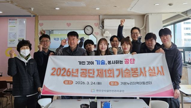 공단은 24일 연수동 가온누리지역아동센터에서 ‘2026년 제1회 기술봉사’를 실시하고, 아동 돌봄공간의 조도 개선과 전기 안전 강화 작업을 진행했다고 밝혔다.