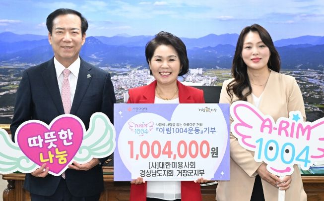 (포탈뉴스통신) 거창군은 지난 24일 (사)대한미용사회 경상남도지회 거창군지부(지부장 구희자)가 지역내어려운 이웃을 돕기 위한 성금 100만 4천 원을 아림1004운동에 기부했다고 밝혔다.