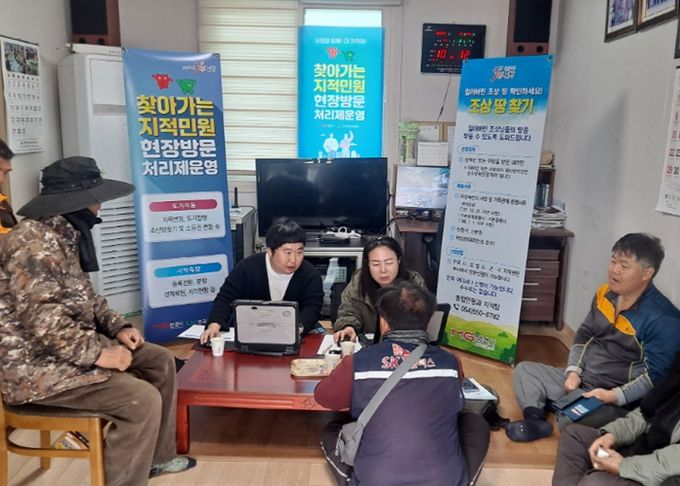 지적민원 현장 처리제는 문경시 종합민원과 지적팀과 한국국토정보공사(LX) 문경지사 직원으로 구성된 합동처리반이 교통이 불편한 마을을 직접 찾아가 지적 전반에 관한 사항에 대해 원스톱 상담을 제공하는 적극 행정 서비스다.