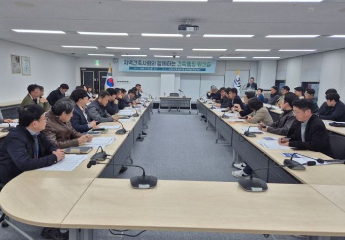 이번 워크숍은 서귀포시 김원칠 부시장 주재로 안전도시건설국 국·과장과 건축업무 담당 공무원, 서귀포시지역건축사회 박용오 신임회장을 비롯한 지역건축사 30여명이 참석한 가운데, 건축행정 현안 공유와 제도 개선 사항 논의를 중심으로 진행됐다.