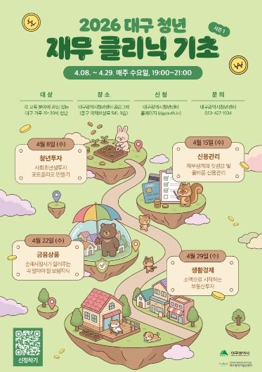 (포탈뉴스통신) 대구광역시는 지역 청년들의 금융 역량을 강화하고 안정적인 자산 형성을 뒷받침하기 위해 ‘대구 청년 재무클리닉’ 사업을 본격 추진한다.