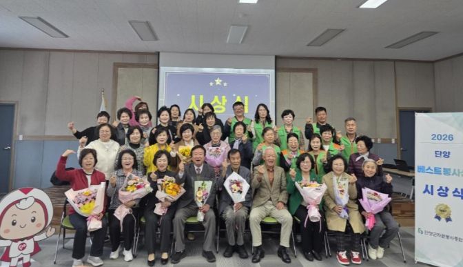 (포탈뉴스통신) 단양군자원봉사종합센터는 지난 26일 ‘2026년 1분기 베스트 봉사상’ 시상식을 개최하고 지역사회 곳곳에서 헌신적인 나눔을 실천한 개인과 단체를 선정·시상했다.