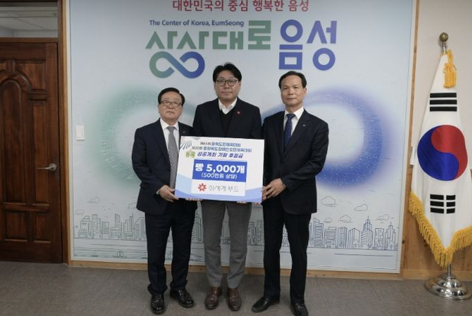 이날 기탁식은 음성군청 집무실에서 조병옥 음성군수, 강준원 음성군체육회장, ㈜신세계푸드 음성공장 정진호 대표가 참석한 가운데 진행됐다.