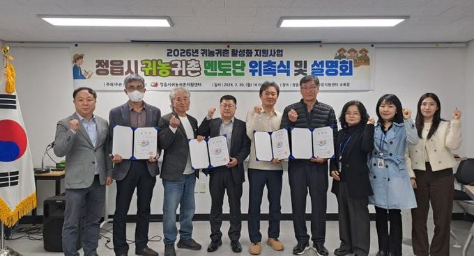 (포탈뉴스통신) 정읍시가 지역 농촌에 젊은 활기를 불어넣고 청년 귀농귀촌인들의 안정적인 정착을 돕기 위해 지난 30일 귀농귀촌종합지원센터에서 ‘2026년 귀농귀촌 멘토단 위촉식’을 열고 본격적인 맞춤형 지원에 나섰다.