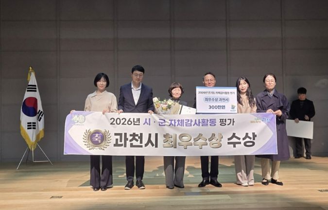 (포탈뉴스통신) 과천시는 경기도 감사위원회가 실시한 ‘2026년 시군 자체감사활동 평가’에서 우수기관으로 선정돼 31일 열린 ‘2026년 도-시군 감사협의체 평가’에서 최우수상을 수상했다.