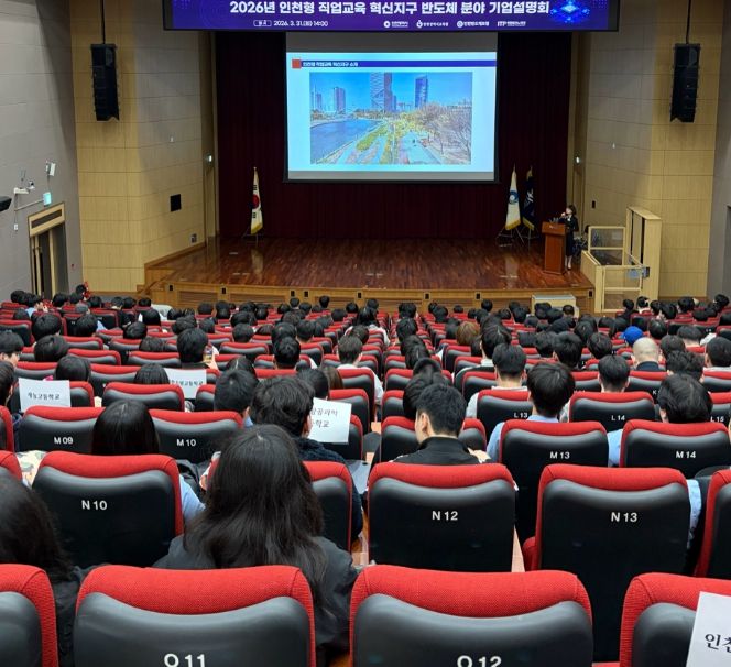 (포탈뉴스통신) 인천광역시교육청은 지난 31일 인천경제자유구역청에서 관내 직업계고 학생 300여 명을 대상으로 ‘2026 직업교육 혁신지구 반도체 분야 기업설명회’를 개최했다.