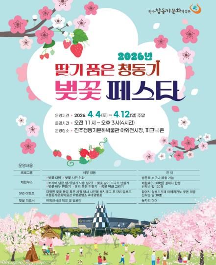 진주시 관계자는 “이번 벚꽃 페스타는 박물관이 유물을 보는 공간을 넘어, 계절과 지역의 특색을 함께 누릴 수 있는 문화공간으로 확장하고자 마련한 행사”라며 “벚꽃길을 따라 박물관을 찾은 시민들이 전시와 체험, 휴식을 함께 즐기며 특별한 봄날의 추억을 만들기 바란다”라고 말했다.