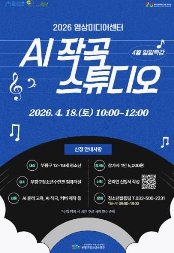 (포탈뉴스통신) 부평구청소년수련관은 오는 18일 오전 10시 수련관에서 인공지능(AI)을 활용해 자신만의 디지털 앨범을 만들어보는 ‘AI 작곡 스튜디오’를 운영한다.