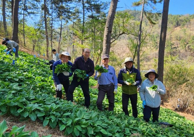 이날 행사에는 경남도 산림휴양과와 고성군청, 고성군산림조합 직원 등 20여 명이 참여해 산마늘 생잎 수확과 현장 판매 지원에 힘을 보탰다.