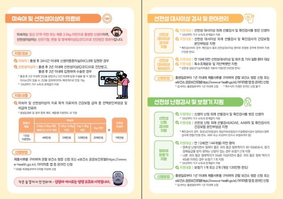 강미정 건강증진과장은 “이번 사업을 통해 영유아 질환을 조기에 발견하고 치료함으로써 건강한 성장기반이 되기를 기대하며 지원대상 가정에서는 빠짐없이 신청 해 혜택을 받길 바란다”고 밝혔다.