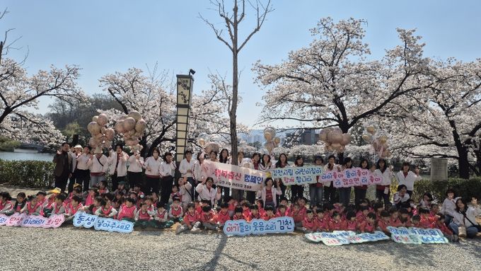 이번 캠페인에는 김천시립어린이집 6개소(모암, 개령, 센트럴자이, 율곡, 지례, 아포)의 원생 및 보육교사 120여 명이 참여해 벚꽃 명소인 연화지 산책로를 따라 이동하며 시민들을 대상으로 출산과 육아의 소중함을 전달했다.