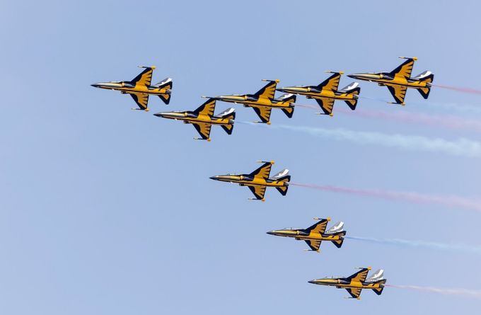 축하 비행은 기상 상황에 따라 일정이 조정될 수 있으며, 우천 시에는 방문객들의 안전을 위해 취소될 예정이다.