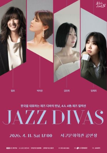 (포탈뉴스통신) 서구문화회관은 4월 11일 오후 5시 서구문화회관 공연장에서 한국을 대표하는 재즈 디바 말로, 박라온, 김민희, 임채희를 초청하여'JAZZ DIVAS'콘서트를 개최한다.
