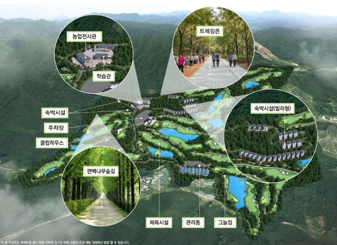 농어촌관광휴양단지는 영동군에서 처음 추진하는 사업으로, 군에서 사업 인허가 등 행정절차를 담당하고, 시행사 및 투자사가 사업비 약 1,800억 원을 투자하여 조성하는 구조로 매머드급 민자유치 사례로 기록될 예정이다.