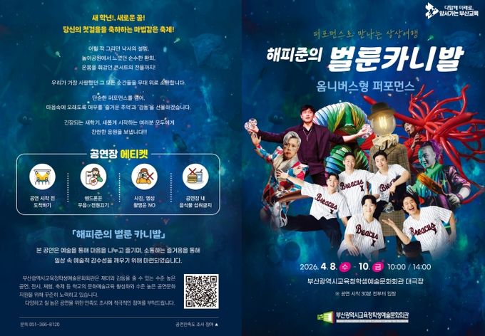 (포탈뉴스통신) 부산광역시교육청학생예술문화회관은 오는 8일부터 10일까지 학생예술문화회관 대극장에서 초·중·고 학생 2,400여 명을 대상으로 ‘해피준의 벌룬카니발’ 공연을 개최한다.