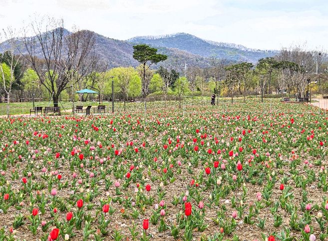 (포탈뉴스통신) 천안의 대표 명소인 삼거리공원 너른뜰 튤립정원에 10만 송이의 튤립이 꽃망울을 터트리며 시민들에게 봄의 설렘을 전하고 있다.