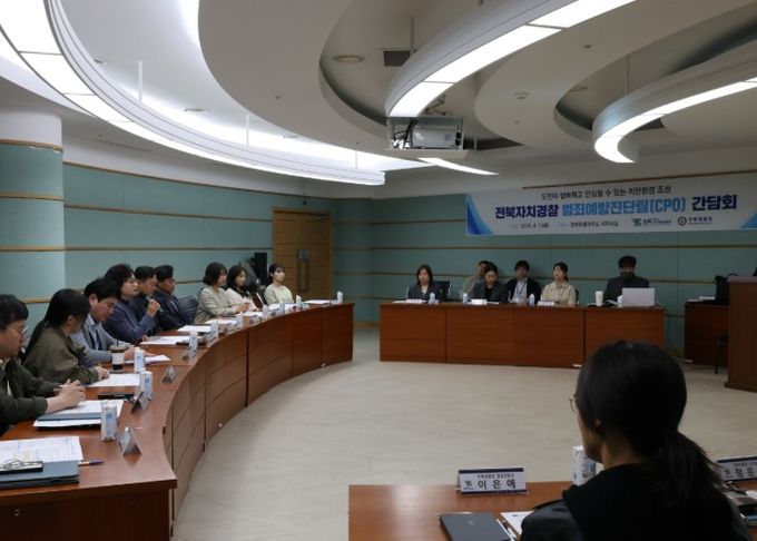 (포탈뉴스통신) 전북자치경찰위원회는 7일 도청 공연장동 세미나실에서 전북경찰청 범죄예방진단팀(CPO)과 간담회를 개최하고, 도민이 안심할 수 있는 치안환경 조성을 위한 정책 방향을 논의했다.