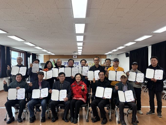 이날 회의에는 구항면장을 비롯해 각 마을 이장들이 참석한 가운데, 봄철 주요 현안과 군정 홍보 사항을 공유하고, 각 마을 이장을 명예사회복지공무원으로 위촉하는 시간을 가졌다.