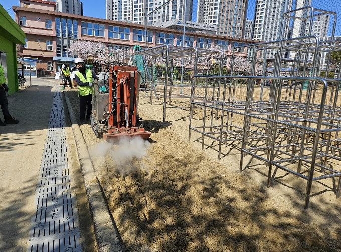 특히 전문 업체에서 놀이기구와 바닥재를 고온·고압의 스팀으로 소독하고 모래 바닥재 기생충(란) 검사도 병행 지원하여 학교 행정업무 부담이 경감될 것으로 기대된다.