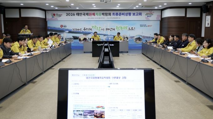 군은 지난 10일 군청 중회의실에서 가세로 군수를 비롯한 부서장 등 40여 명이 참석한 가운데 ‘2026 태안국제원예치유박람회 최종 준비상황 보고회’를 개최했다고 밝혔다.