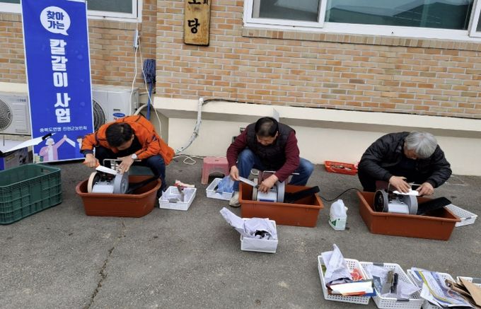 농민회는 충분한 사전 연습 과정을 거친 뒤 관내 마을을 순회하며 주민들을 대상으로 무료 칼 연마 서비스를 제공하고 있다.