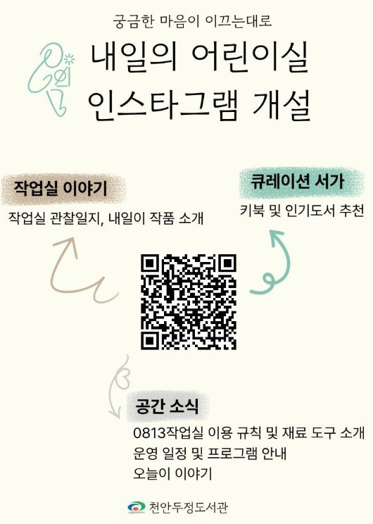 (포탈뉴스통신) 천안시 두정도서관은 13일부터 내일의 어린이실 누리소통망(SNS)을 운영한다고 밝혔다.